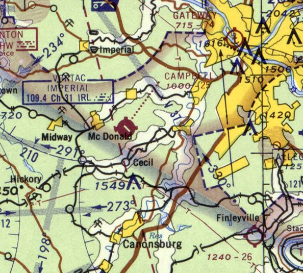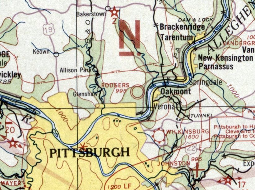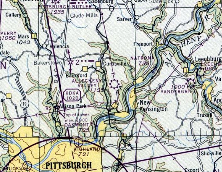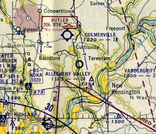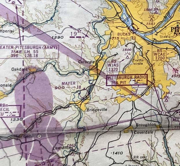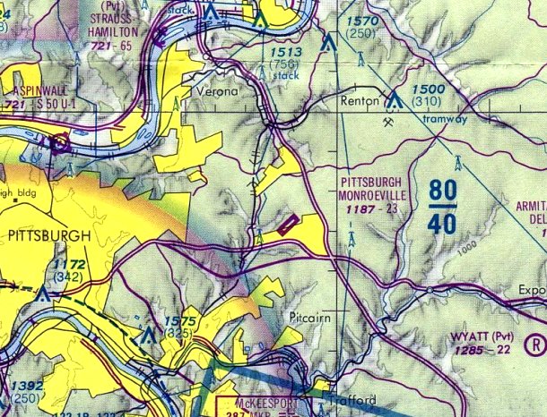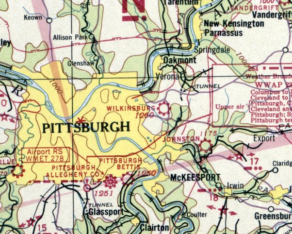 The 1976 Pittsburgh Local Aeronautical Chart (courtesy of Mike Keefe)