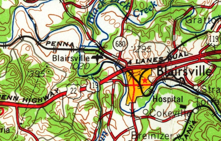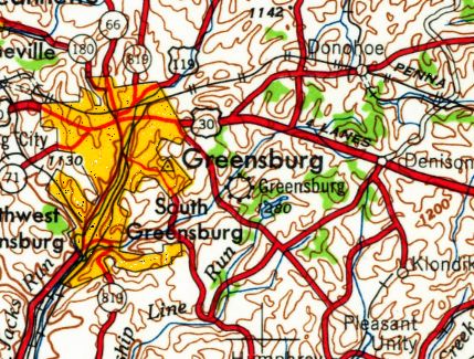 It depicted Wilkinsburg-Pittsburgh Airport as a northeast/southwest-oriented clearing, but no specific runway was depicted.