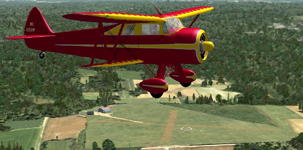 It depicted 2 unpaved runways, with 3 light single-engine planes & a few small buildings on the west side.