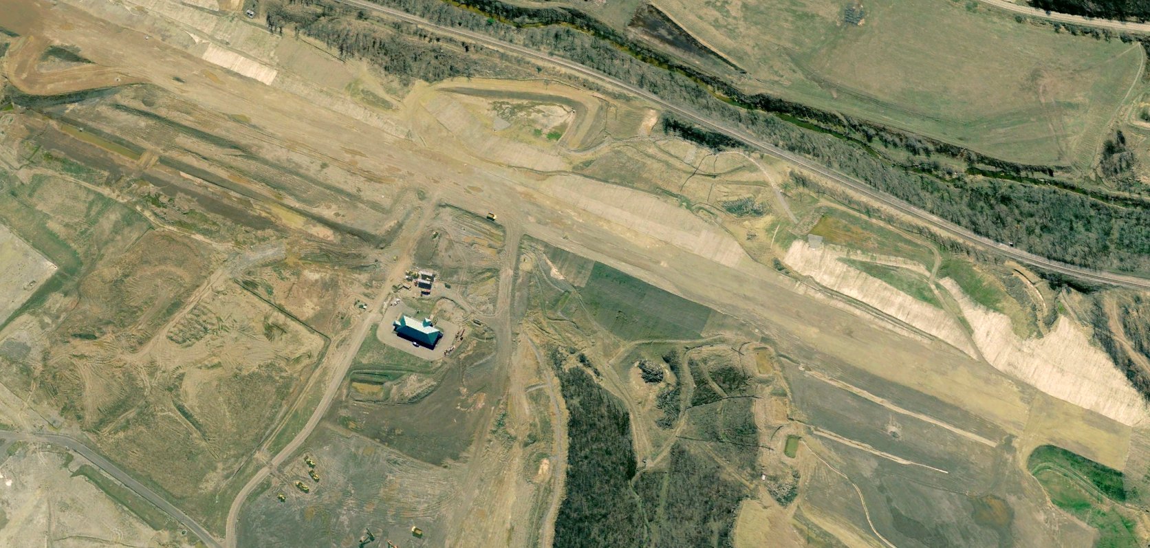A circa 2007 aerial view looking west at the west side of the site of Pittsburg Metro Airport,