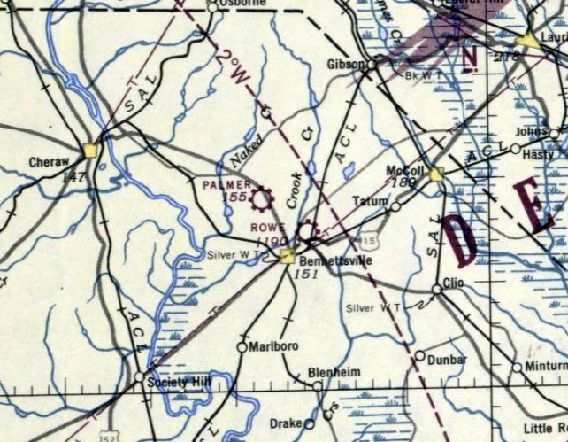 Bennettsville Airport was no longer depicted on the 1958 Charlotte Sectional Chart.