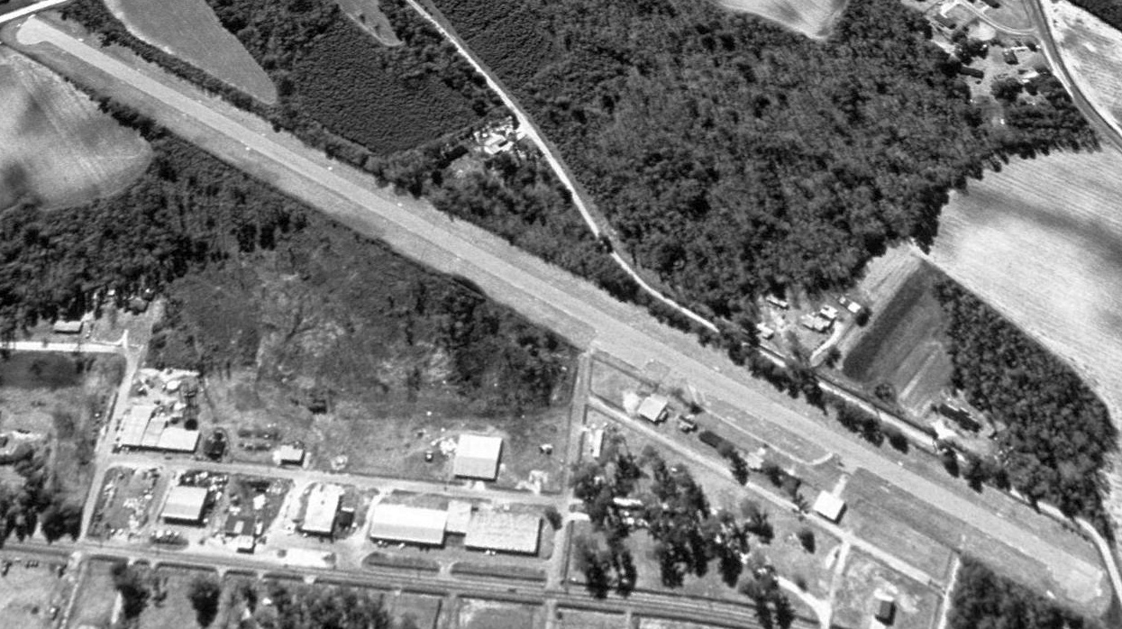 as a 1955 aerial view showed it having a single unpaved northwest/southeast runway.