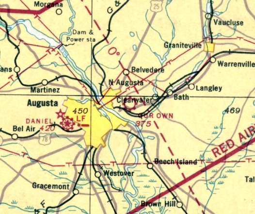 The last aeronautical chart depiction which has been located of Hawthorne Field was on the April 1947 Savannah Sectional Chart,