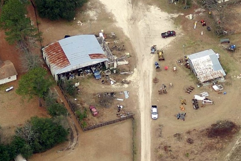 A 2018 aerial view view looking northwest showed only the faintest outline of the 2 former runways of Bethel Lake Wylie Airfield, with the property having been considerably overgrown.