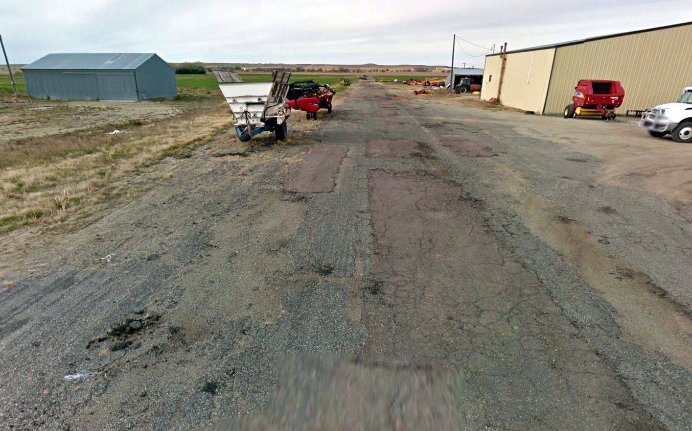 A 2024 photo looking east at the former Lake Preston Airport hangar.