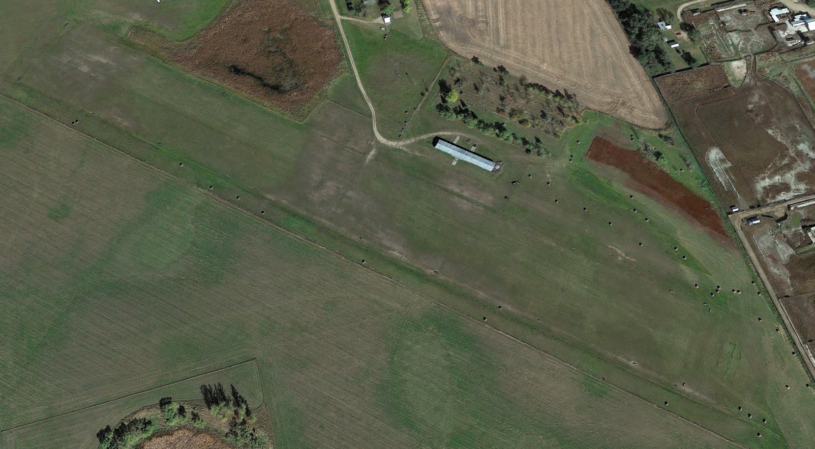 A 2015 aerial view looking north showed no trace remaining of Skie Air Service Landing Field.