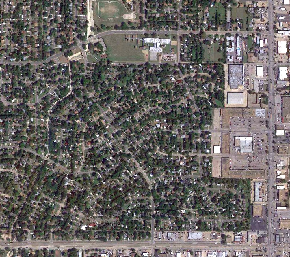 A 2017 aerial view looking north showed no trace remaining of Cole Airport.