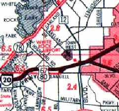 This short-lived small airport was located to the southeast of Dallas.