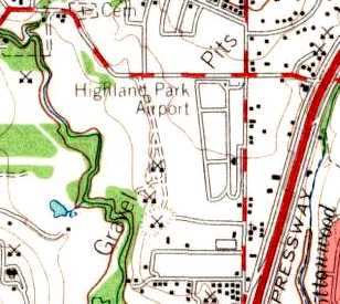 The 1959 USGS topo map depicted Park Cities Airfield as having a single north/south runway,