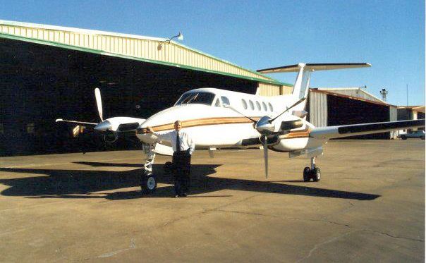 A circa 1980s photo of a King Air in front of Andrau's hangars (courtesy of Jeffrey).