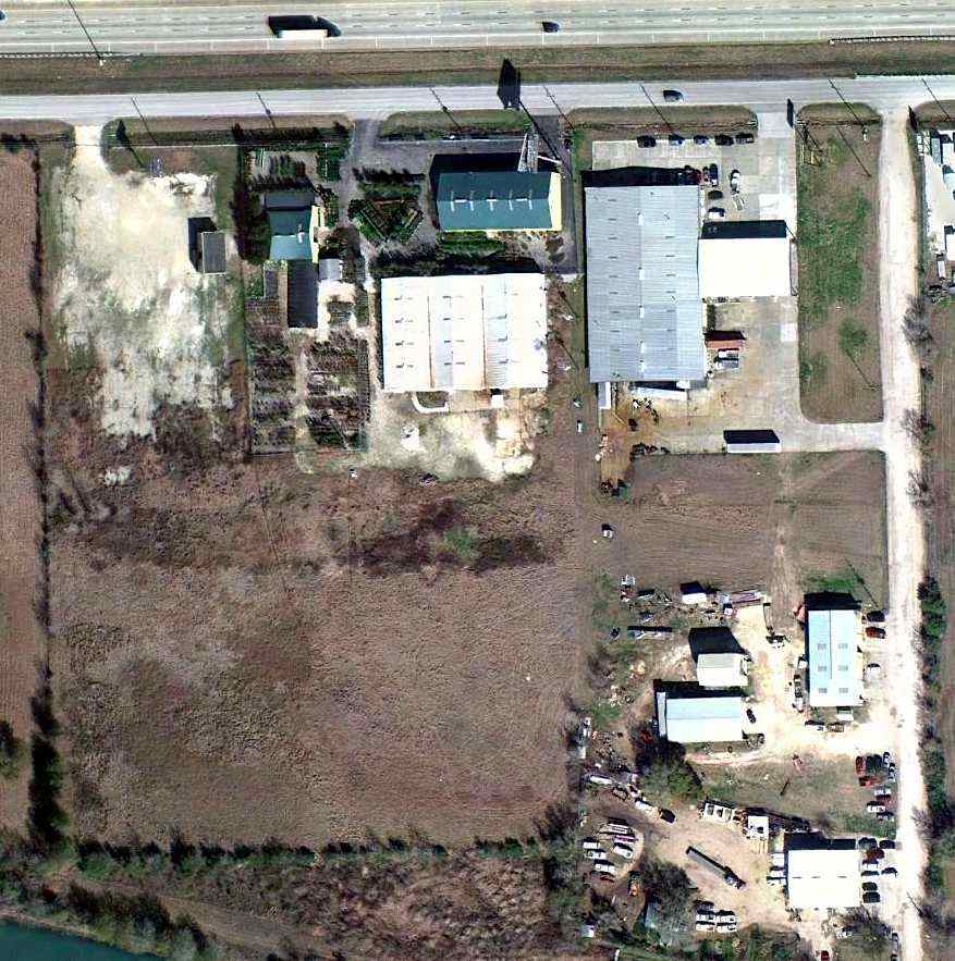 On the west side the buildings were removed (along with the house & apparent farm buildings slightly further west) and brush/trees cleared in 2014-15 across much of the lots.