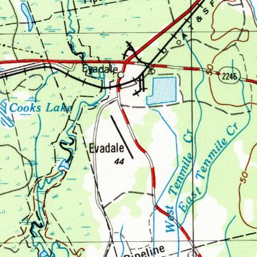 It depicted Evadale as having a paved northwest/southeast runway, with a ramp & small hangar on the east side.