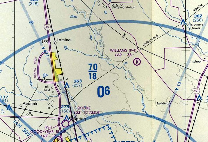 Williams Airport, as depicted on the March 1967 Beaumont Sectional Chart.