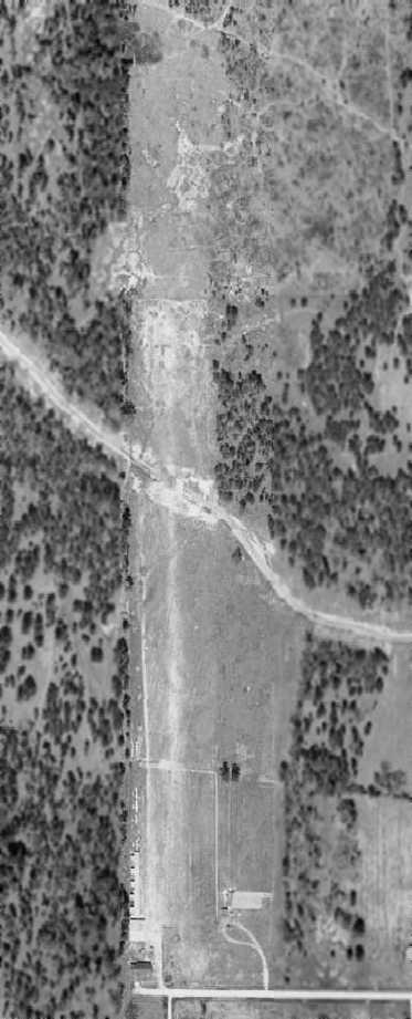 A circa 2007 aerial view showed the former Piney Woods runway as well as several small buildings.
