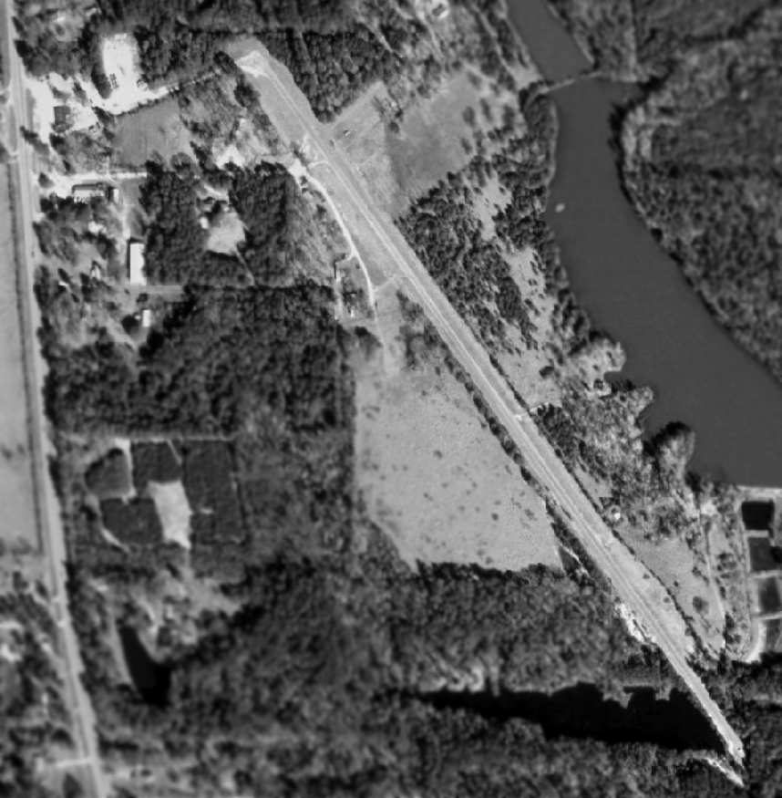 In the 1995 USGS aerial photo, the Piney Woods Airfield runway still remained, apparently without any change.