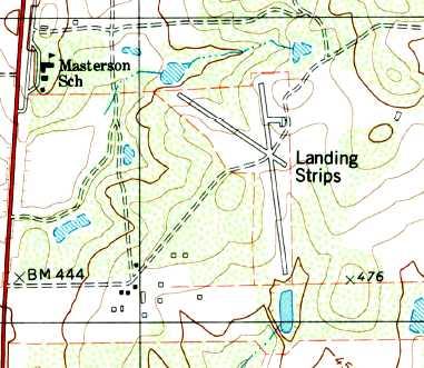 The 1985 USGS topo map depicted a single northwest/southeast runway, but labeled simply as “Landing Strip”.