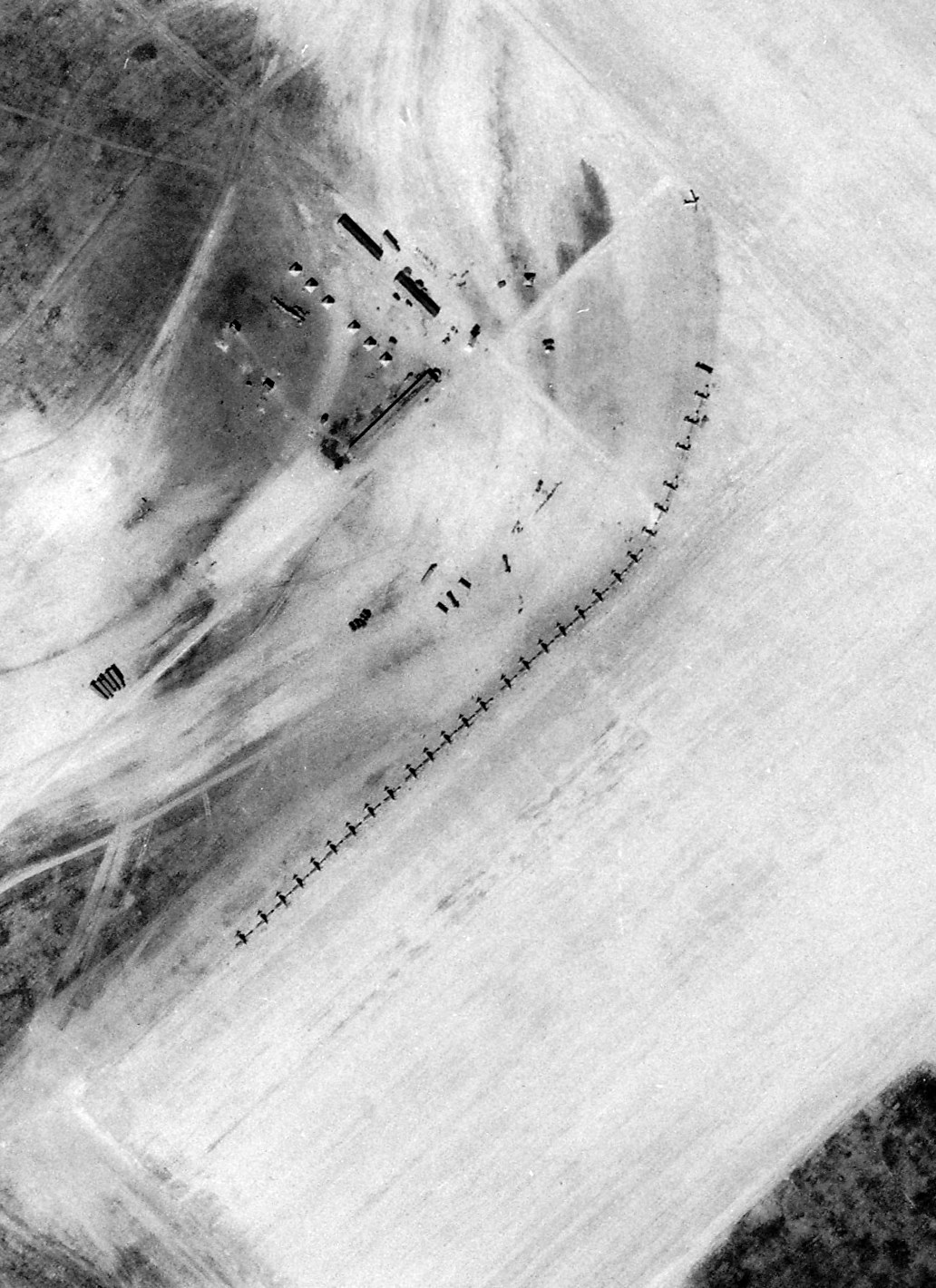 It consisted of 3 paved runways arranged in a triangle, with a paved ramp & one small building on the south side.