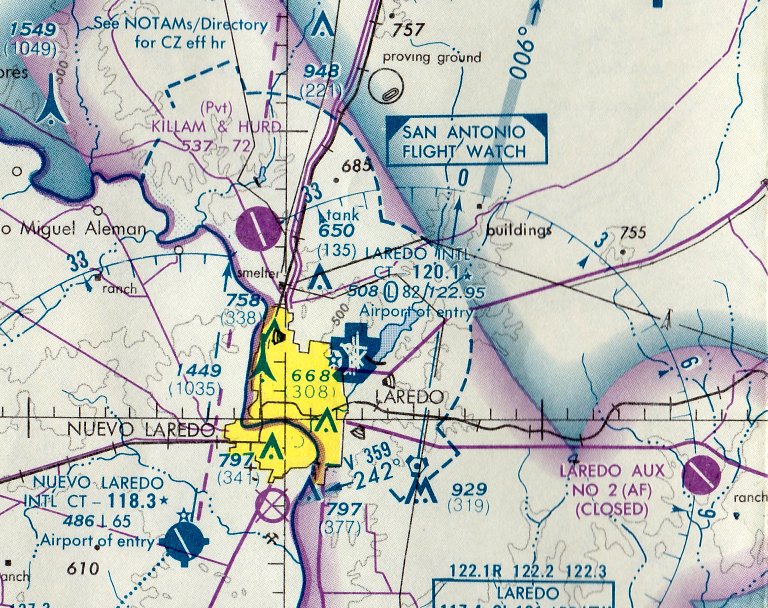 It depicted “Laredo Aux #2 AF” as having a 5,000' paved runway.
