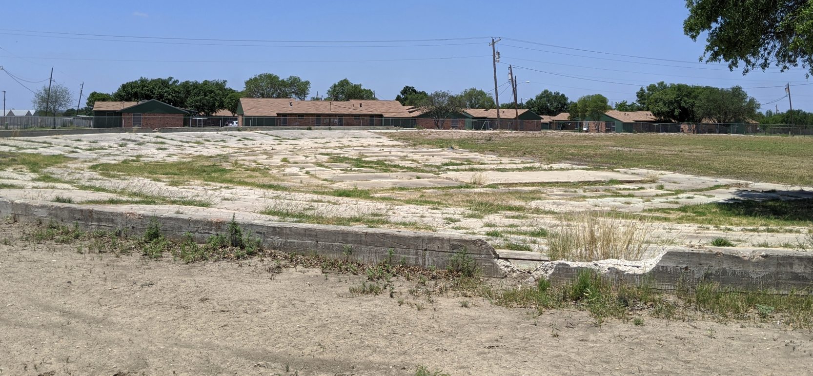 A 5/14/20 photo by Michael Kersten of the remains of the circular concrete foundation of the swimming pool built by resident internees of the WW2 Crystal City Family Internment Camp, adjacent to the airport site.