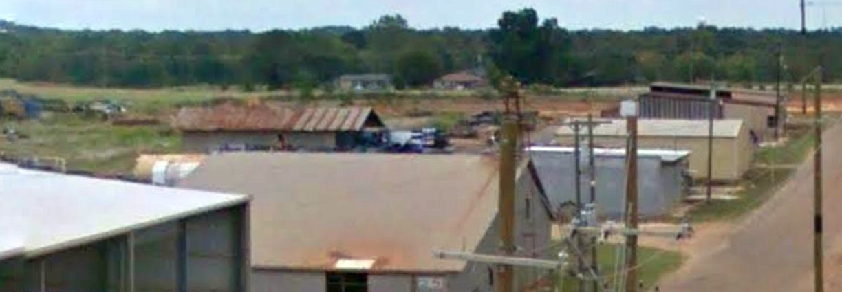 now used for storage of a large number of vehicles & other unidentified items.
