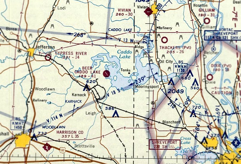 The last aeronautical chart depiction which has been located of Beer Field was on the June 1968 Shreveport Sectional Chart.