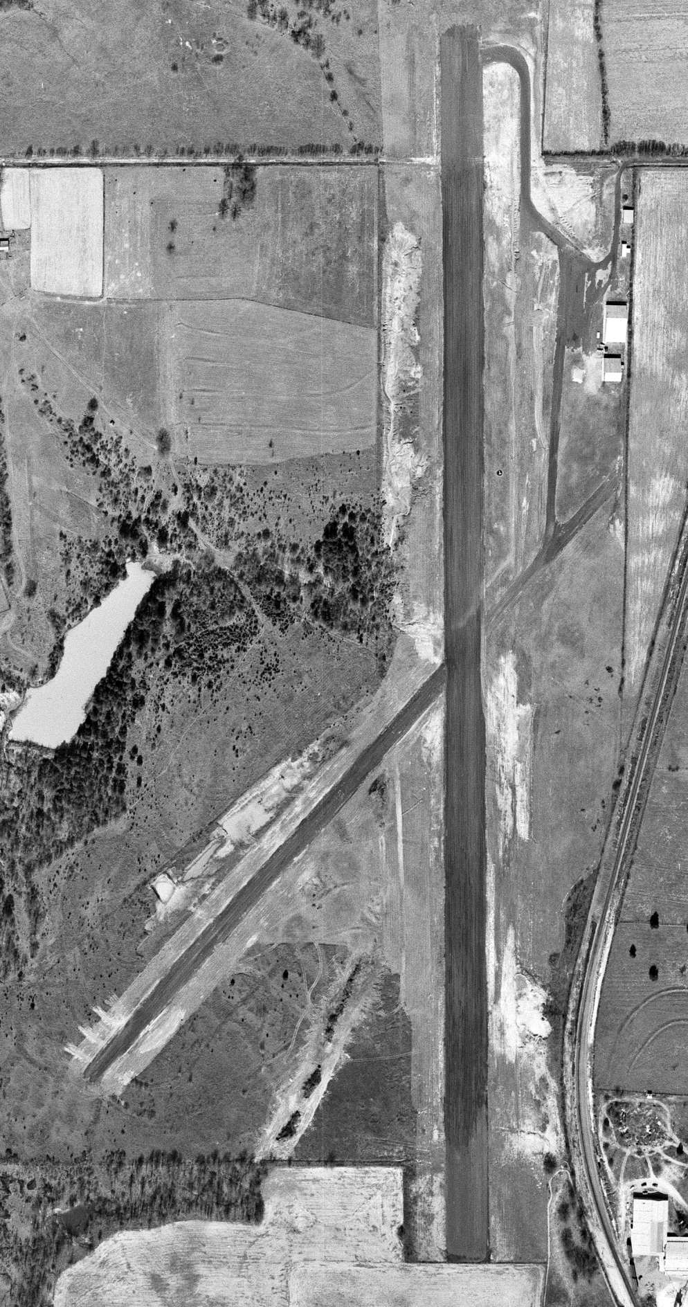 but the outlines of the 2 runways were still clearly recognizable, along with a connecting taxiway at the south end.