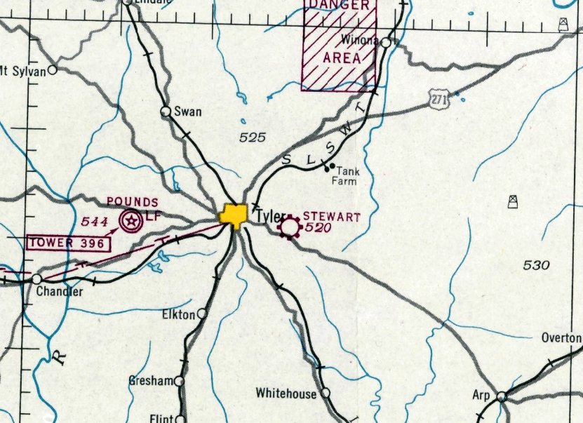 as it was not yet depicted on the August 1955 Shreveport Sectional Chart.