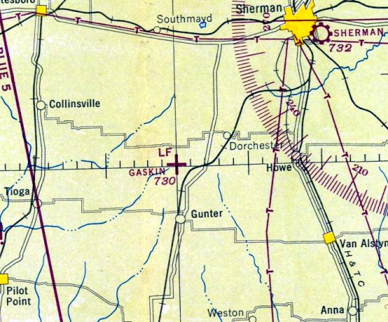 Strangely, "Gaskin AF" was depicted as an active airfield on 1957 Dallas Sectional Chart (courtesy of Chris Kennedy),