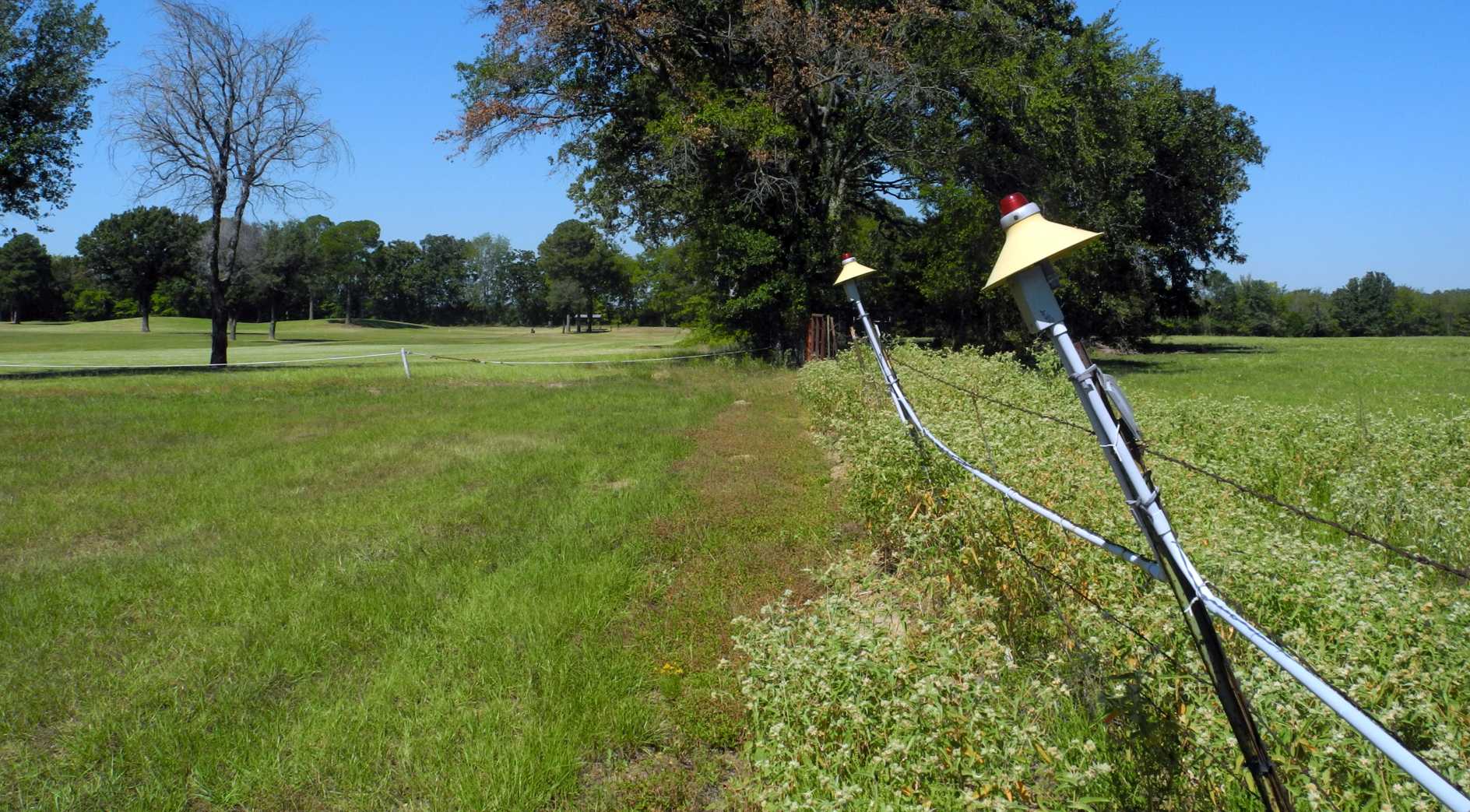 A 10/3/22 photo by Randy Coller of airport markers between Canton-Hackney Airport & the adjacent golf course.