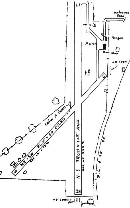 An apron sat on the northeast corner of the field, with several small hangars.