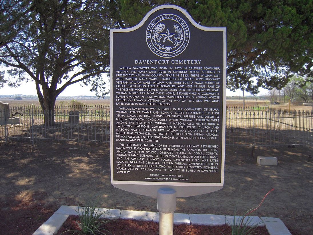 A 2004-2024 photo of a historical marker at adjacent Davenport Cemetery, which mentions Davenport Field.