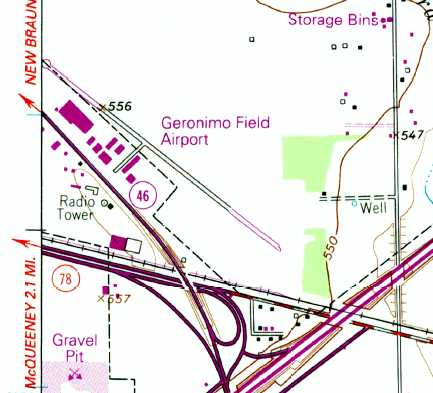 Having been renamed, the field was listed as "Geronimo Field" in the 1985 TX Airport Directory (courtesy of Steve Cruse).