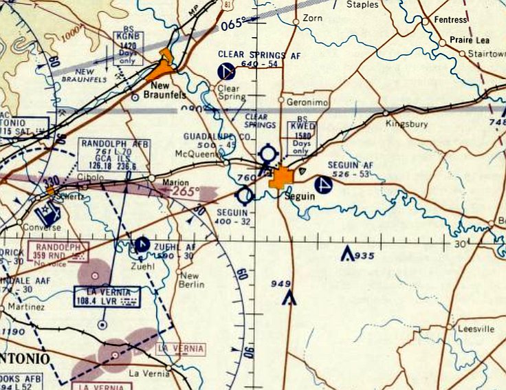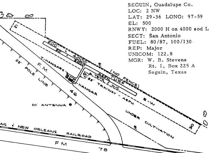 The last aeronautical chart depiction which has been located of Seguin Airport was on the March 1960 San Antonio Sectional Chart.