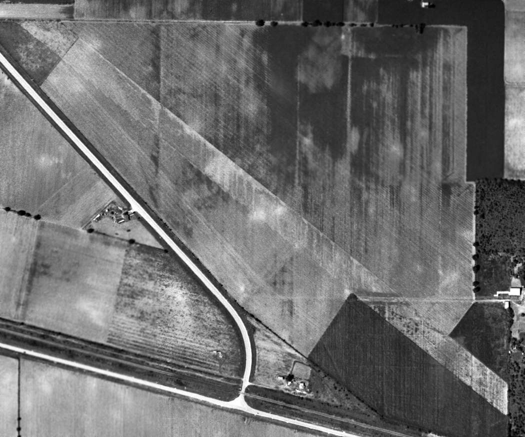 A 1986 aerial photo showed the area of the runway had been taken over for farming at some point between 1973-86, erasing any trace of the runway.
