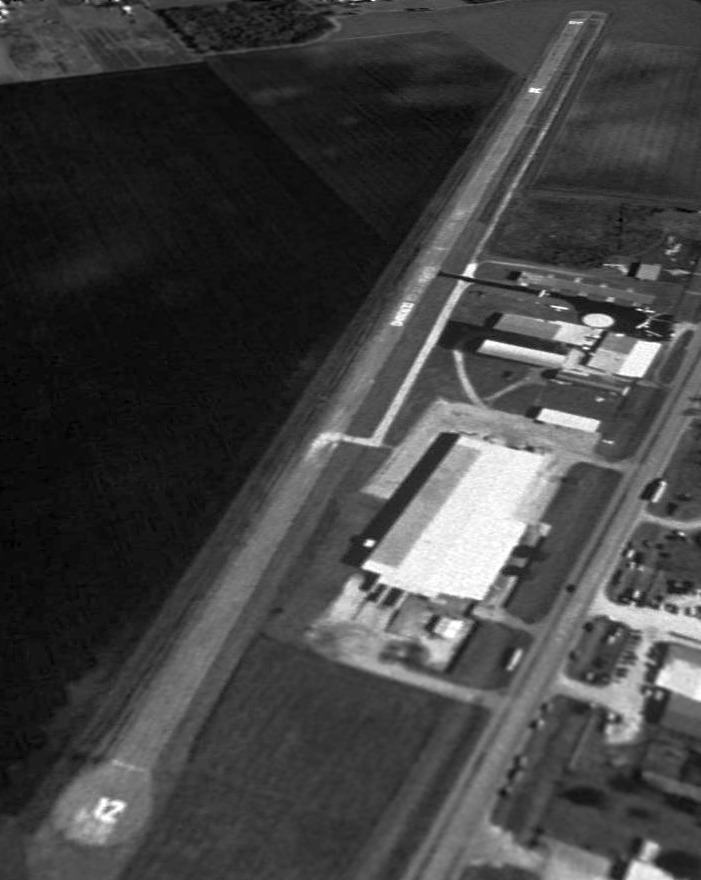 A circa 2008 aerial view looking south shows the Runway 30 numbers still remaining recognizable.