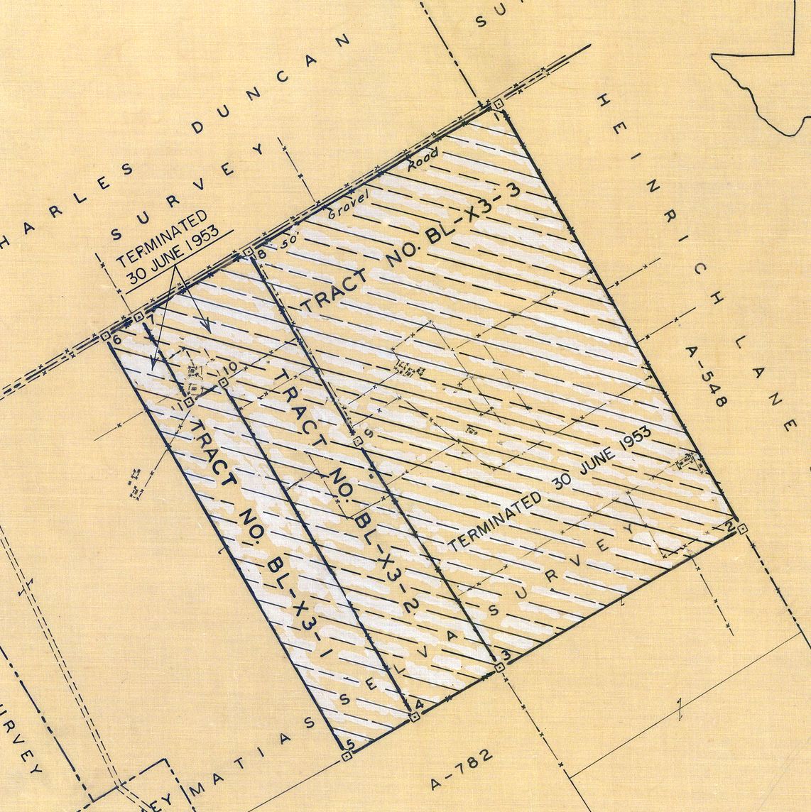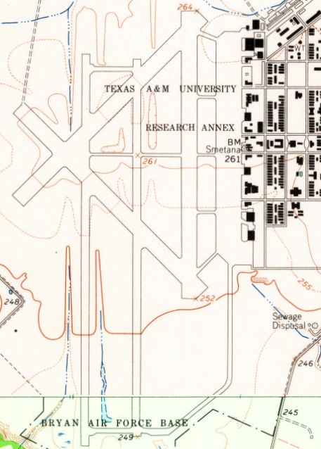 A 1965 Property Ownership Map (from the National Archives, courtesy of Brian Rehwinkel) depicted Blackland Auxiliary Field as a square property outline.
