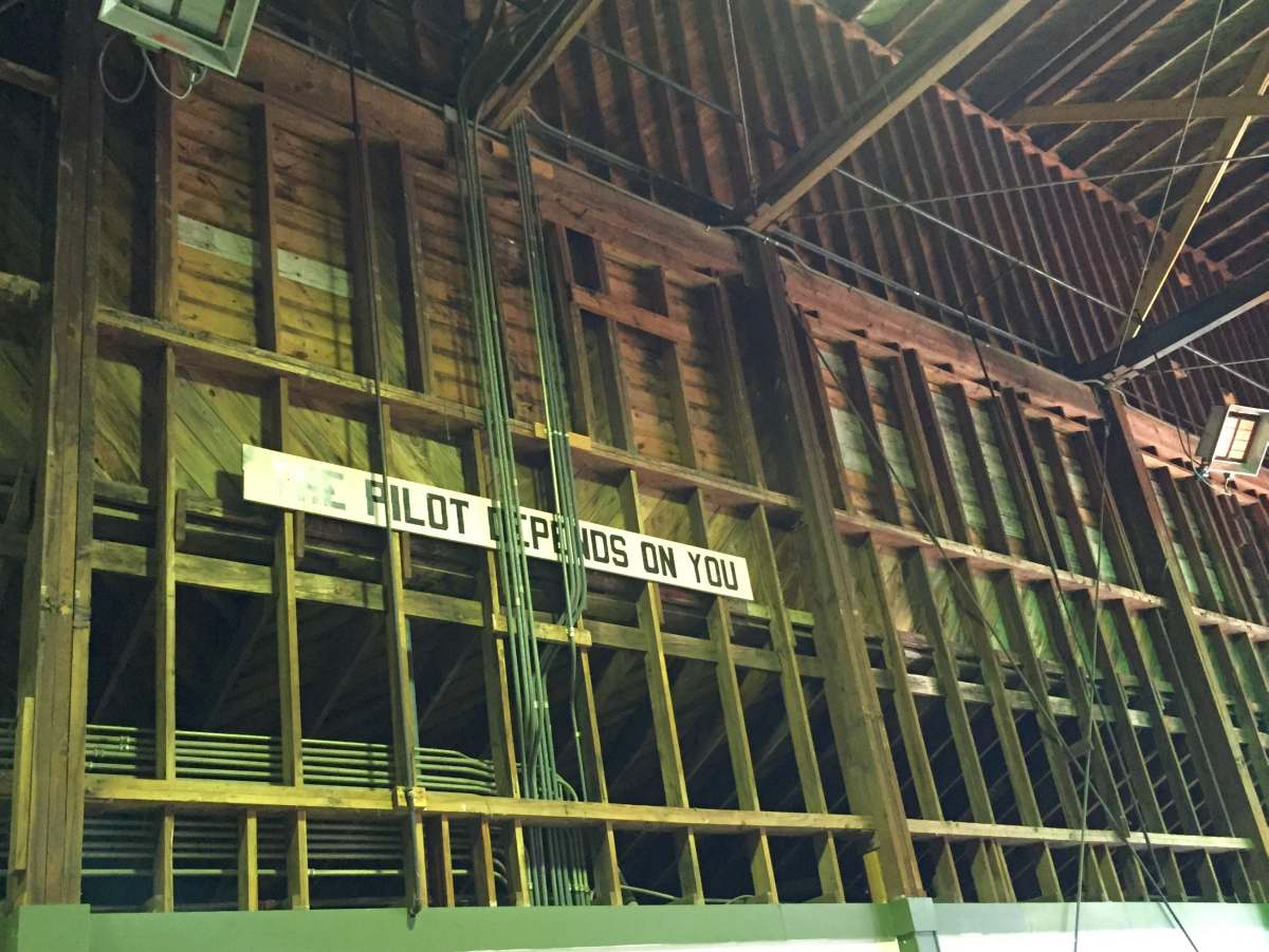 A 3/25/78 photo by George Wilhite, “Inside the old main hangar, now being used for something other than planes.”