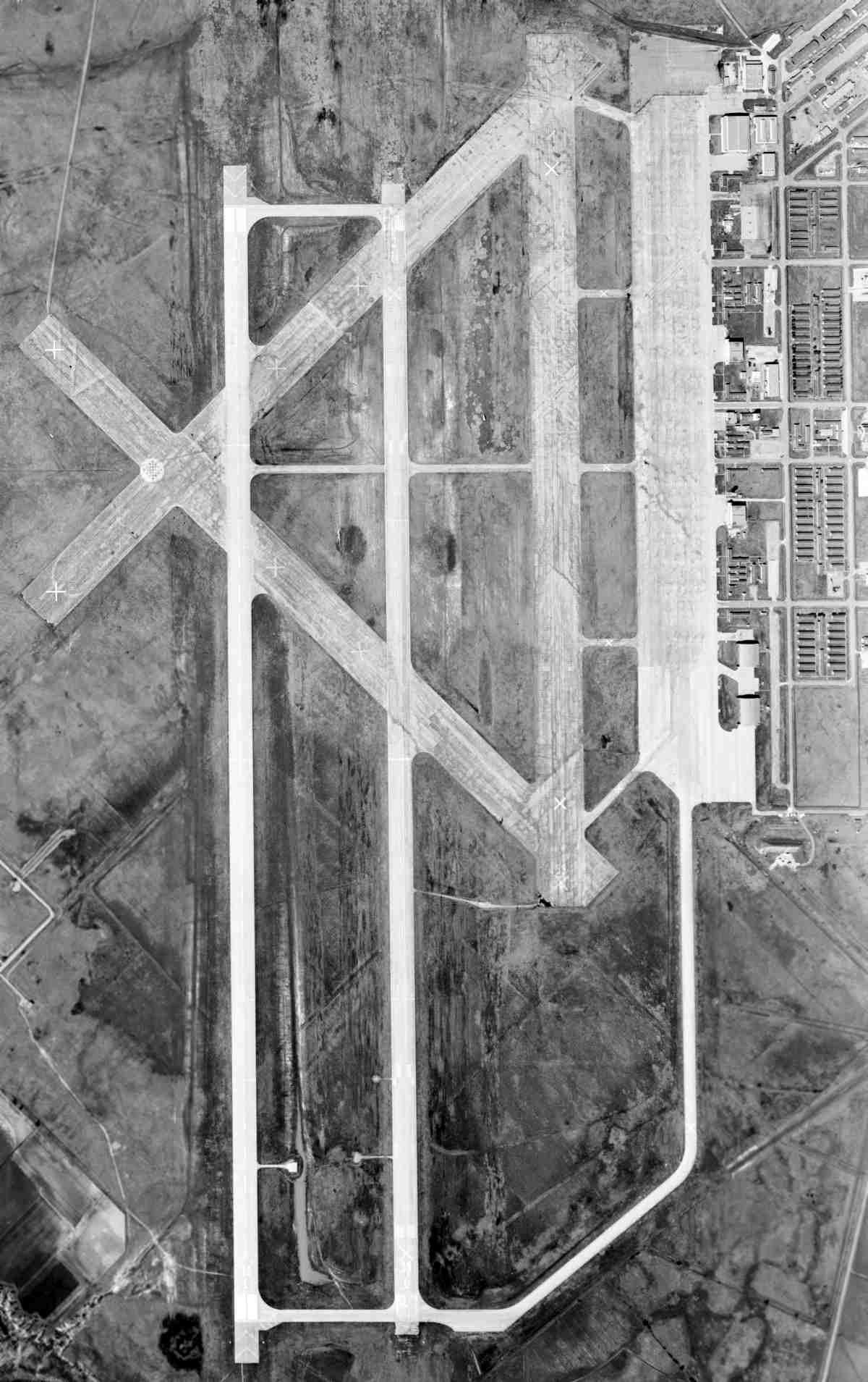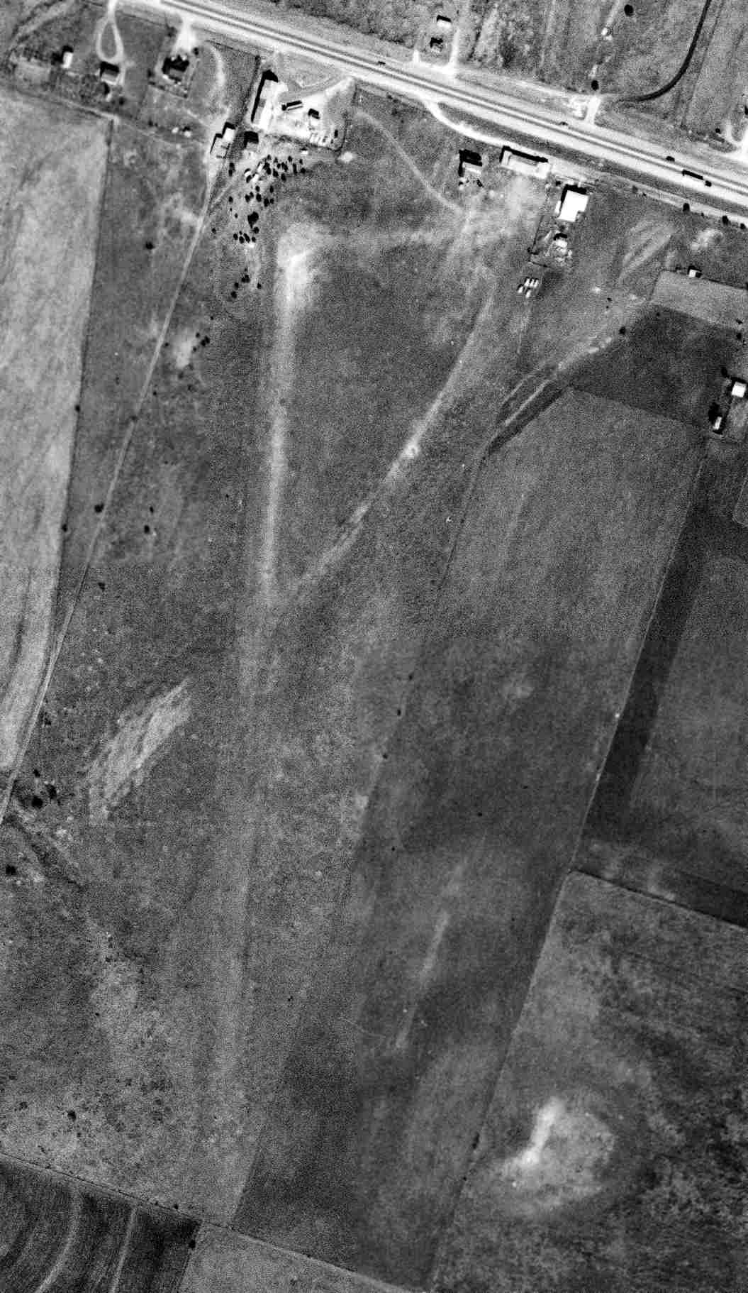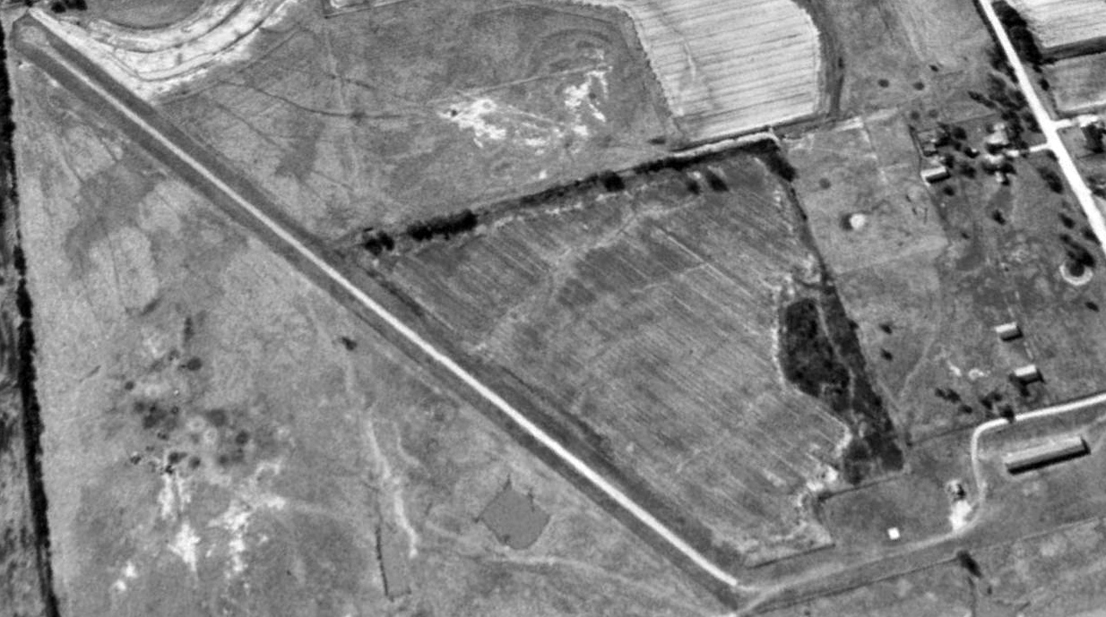 The first photo which has been located showing recognizable elements of an airfield at this site was a 1981 aerial view,