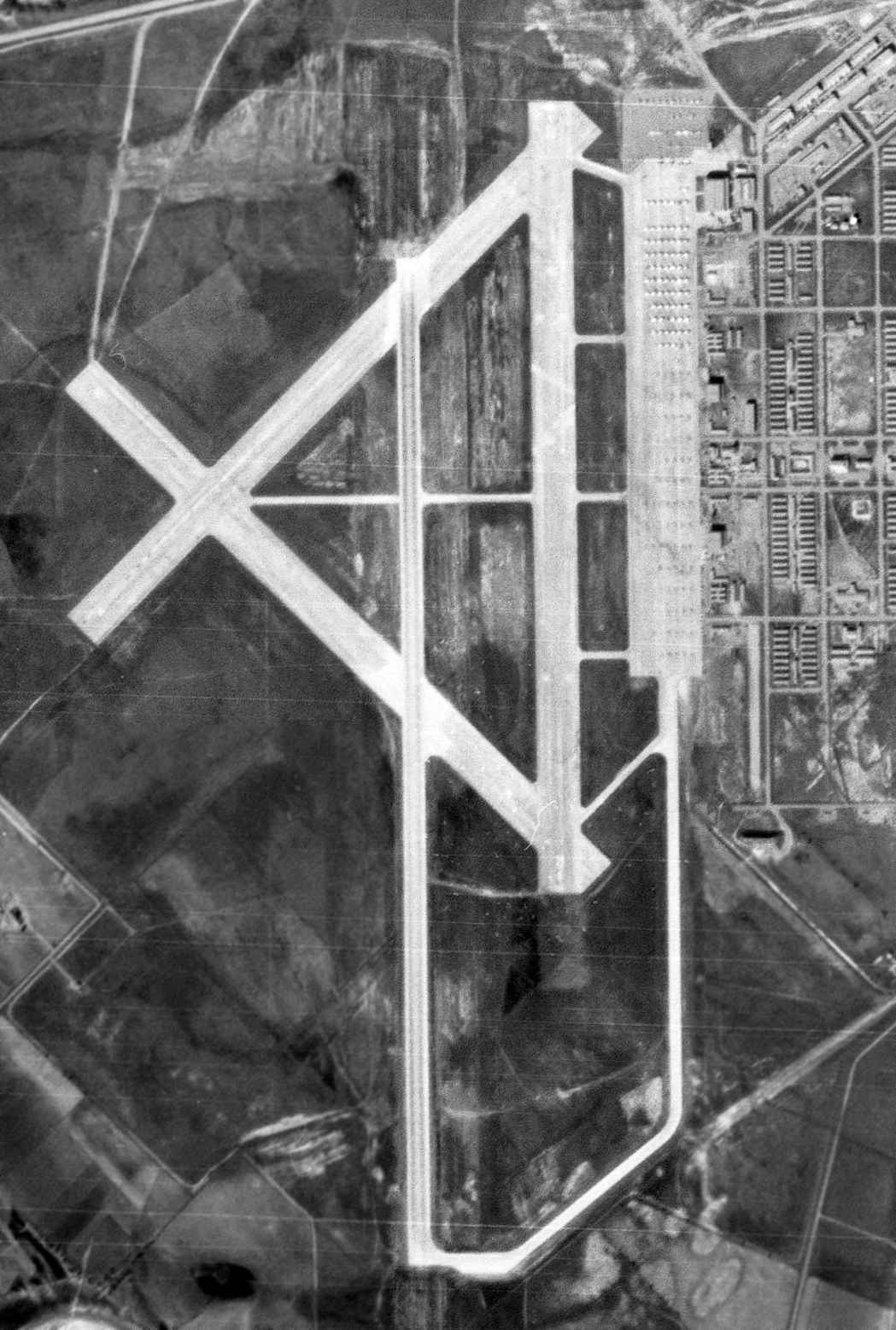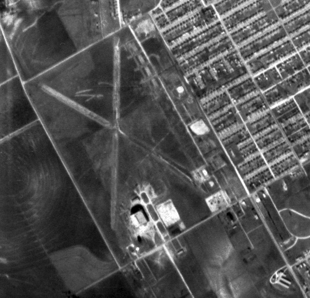 The earliest photo which has been located of Blackland Auxiliary #3 was an 8/13/45 aerial view looking north (from the National Archives, courtesy of Brian Rehwinkel).