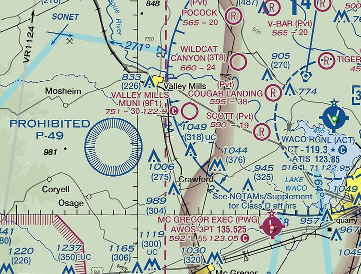 It depicted Valley Mills as having a 3,000' unpaved runway.