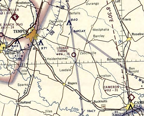The 1966 Austin Sectional Chart (courtesy of John Price) continued to depict Belton as having a 2,100' unpaved runway.