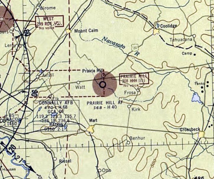 It depicted Prairie Hill AF airfield as having a 4,000' paved runway & a Non-Directional Beacon.