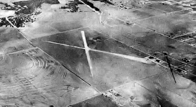 Brian Rehwinkel noted, the photo showed “an open airfield where the landings & takeoffs probably occurred in the Northeast & Northwest portions of the field (similar to the runways that were later marked).”