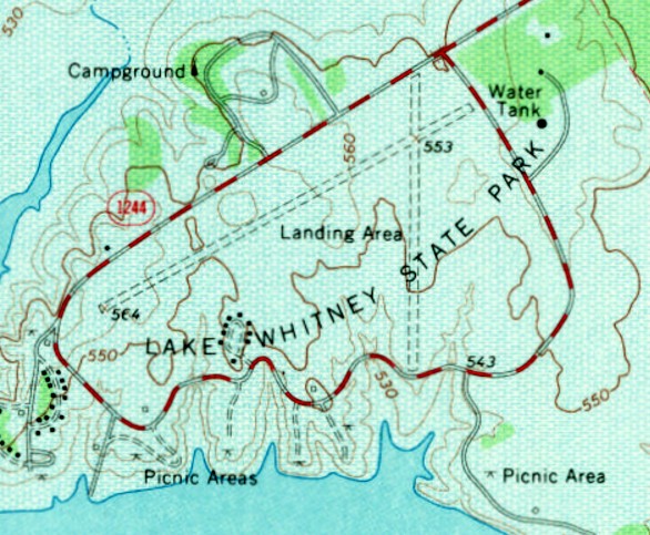 The last aeronautical chart depiction which has been located of Waco Auxiliary Field #5 was on the April 1958 Austin Sectional Chart.
