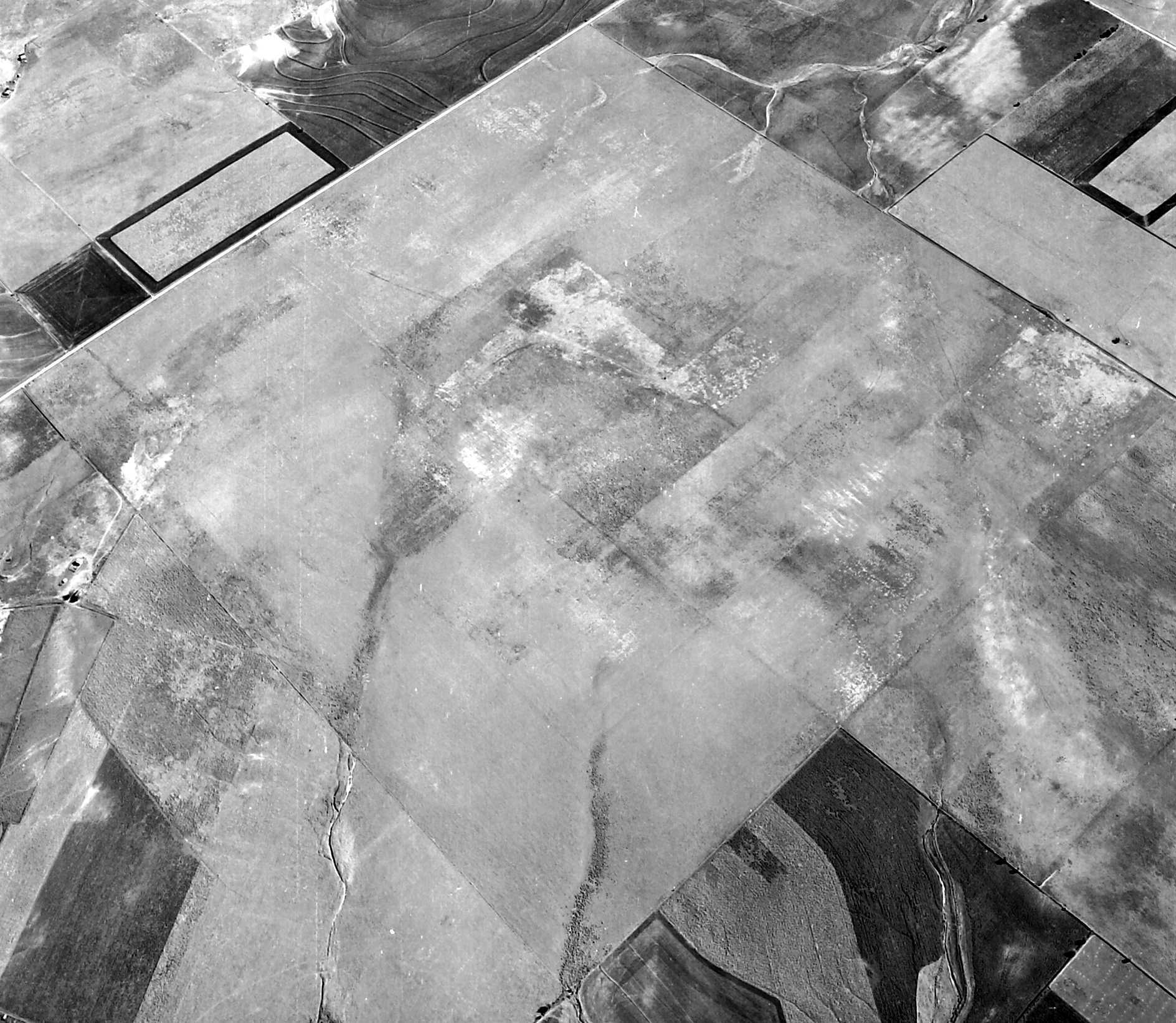 A 1970 aerial view continued to depict an open grass area, with no recognizable sign of an airfield.