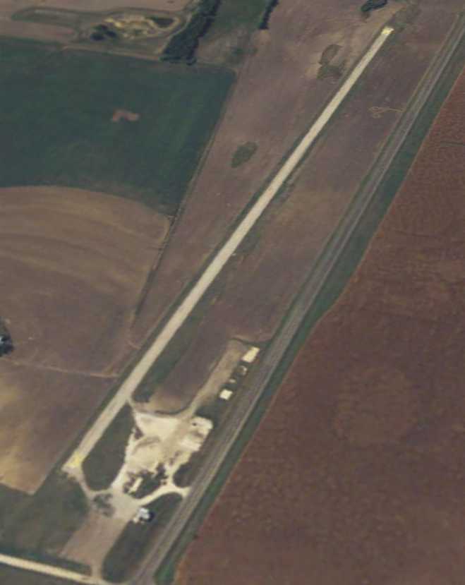 As seen in a 11/3/11 aerial photo, the Prairie Hill airfield consisted of 3 paved 4,100' runways, a small paved ramp & the radio beacon building.