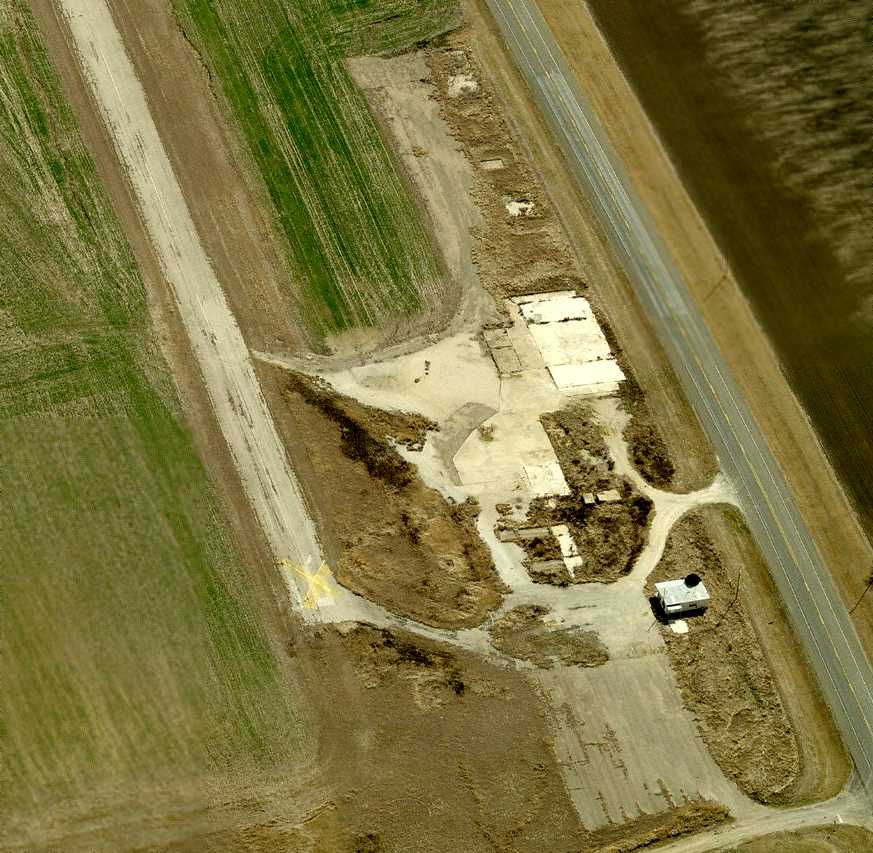 A paved ramp was on the west side, but there were not any buildings seen on the field.