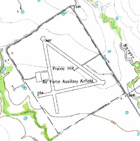 The 1957 USGS topo map depicted the "Prairie Hill Air Force Auxiliary Field"