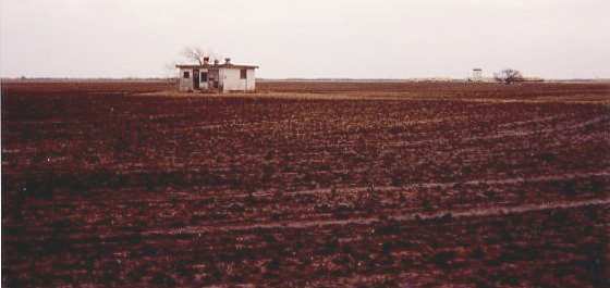 A 2013 photo looking east showed the former shade hangar on the northwest side of the site of De Leon Airport.