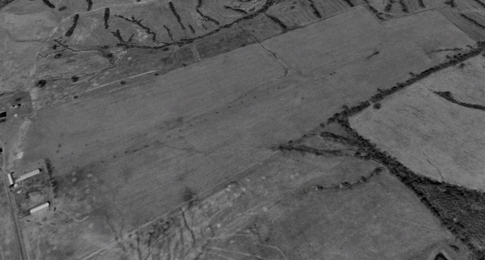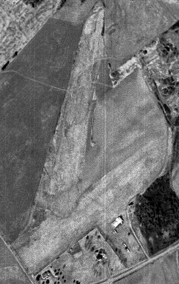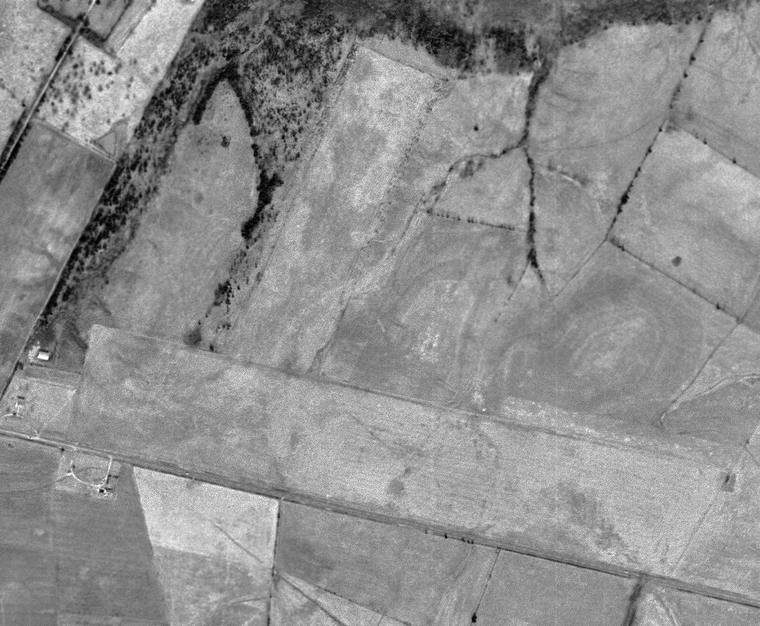 A 6/20/11 aerial view (courtesy of Dallam Oliver-Lee) showed a row of trees along the west side of the property which traced the outline of a runway